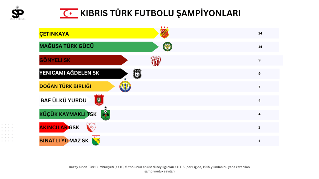 14 şampiyonlukla Mağusa Türk Gücü’ne ait. Sarı-yeşilli ekip, özellikle son yıllarda üst üste