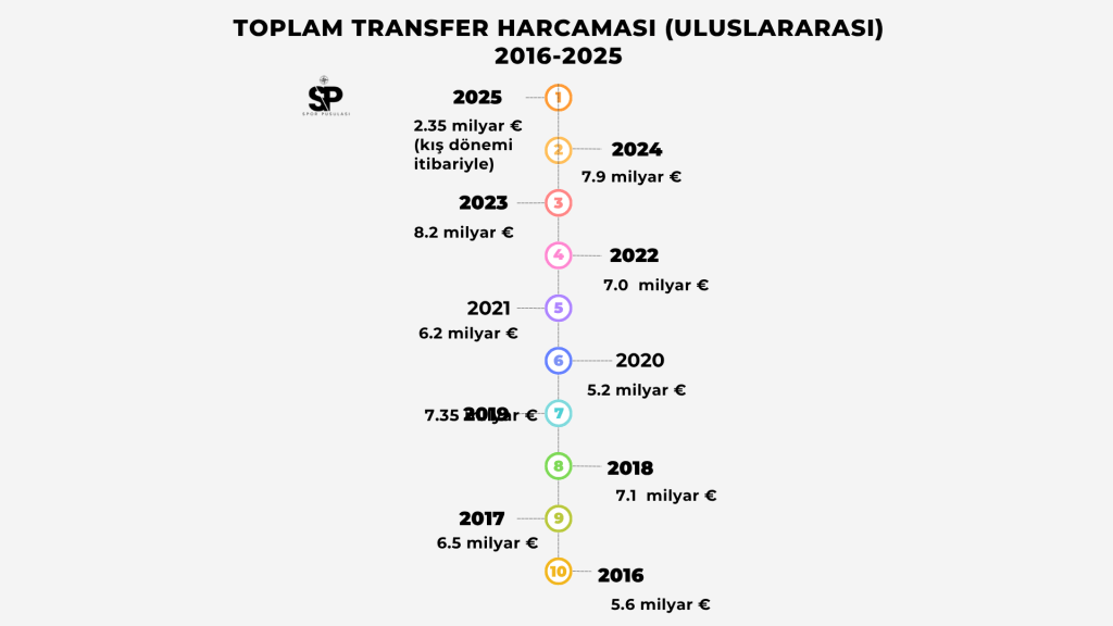 Futbol artık sadece bir oyun değil; dev bir ekonomi, global bir endüstri. 2016’ten bu yana geçen on yıllık süreç, futbol kulüplerinin transfer harcamalarındaki çarpıcı artışla hafızalara kazındı. Yıldan yıla değişen bu ekonomik tabloyu sayılara döktüğümüzde, karşımıza şaşırtıcı bir tablo çıkıyor. İşte 2025’e kadar futbol dünyasında yıllık bazda ödenen bonservis bedelleri ve bu dev harcamaların perde arkası.